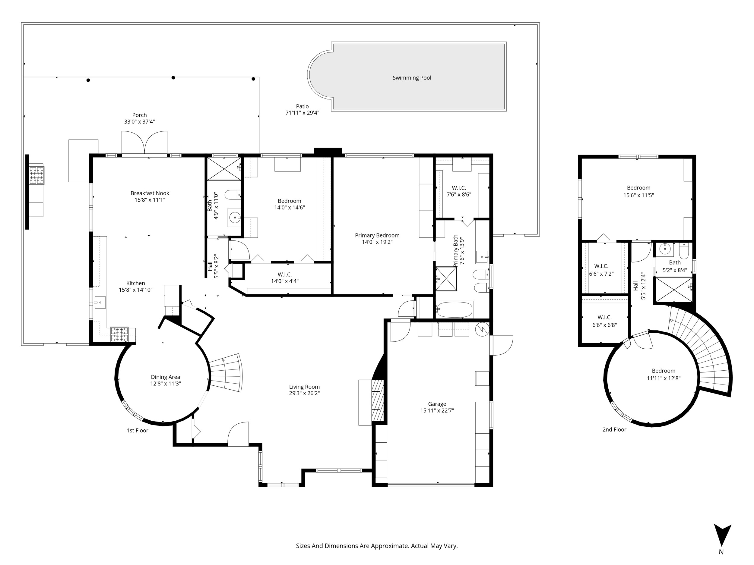 The first-floor primary ensuite offers a serene retreat with custom cabinetry, a walk-in closet, and a spa-inspired bath. 2 updated guest baths, custom built-ins, a private office wall unit, and a flexible upstairs guest suite with retractable Murphy Bed Cabientry add versatility and craftsmanship throughout.