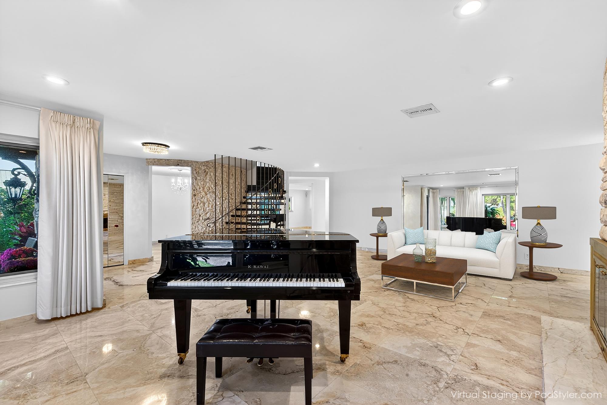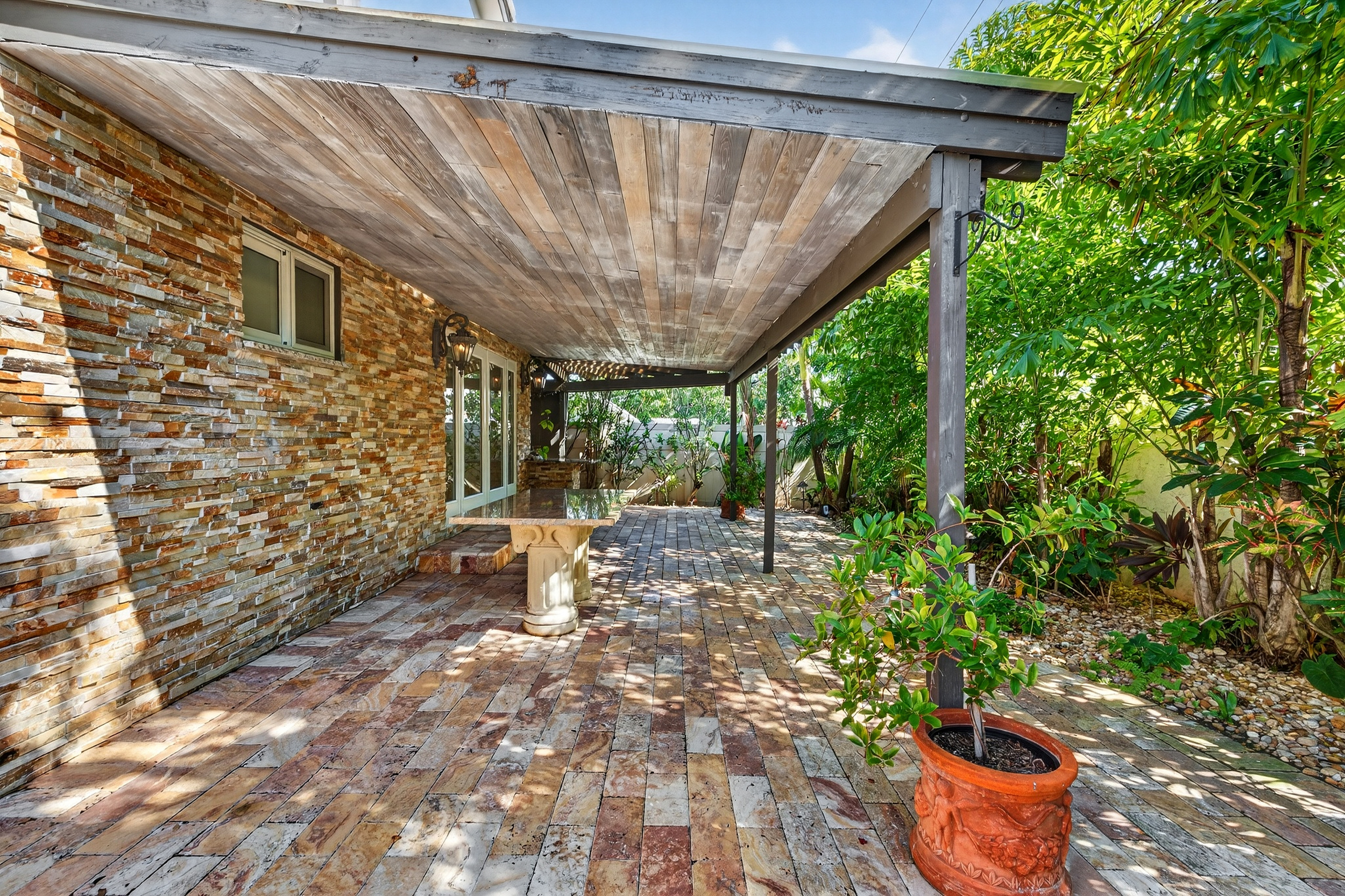 Outdoors, a private backyard oasis with lovely landscaping is perfectly punctuated by fairy-like copper light fixtures throughout. A saltwater pool with waterfall, a covered veranda with cedar tongue-in-groove ceiling, and a fully operational summer kitchen is ideal for entertaining. Other improvements include a newer, warrantied concrete tile roof, a 5-ton A/C, impact windows and doors, natural gas service, tumbled marble pavers, and fresh interior paint. Certified as a Turn-Key Residence, the home has been professionally inspected and is truly move-in ready.